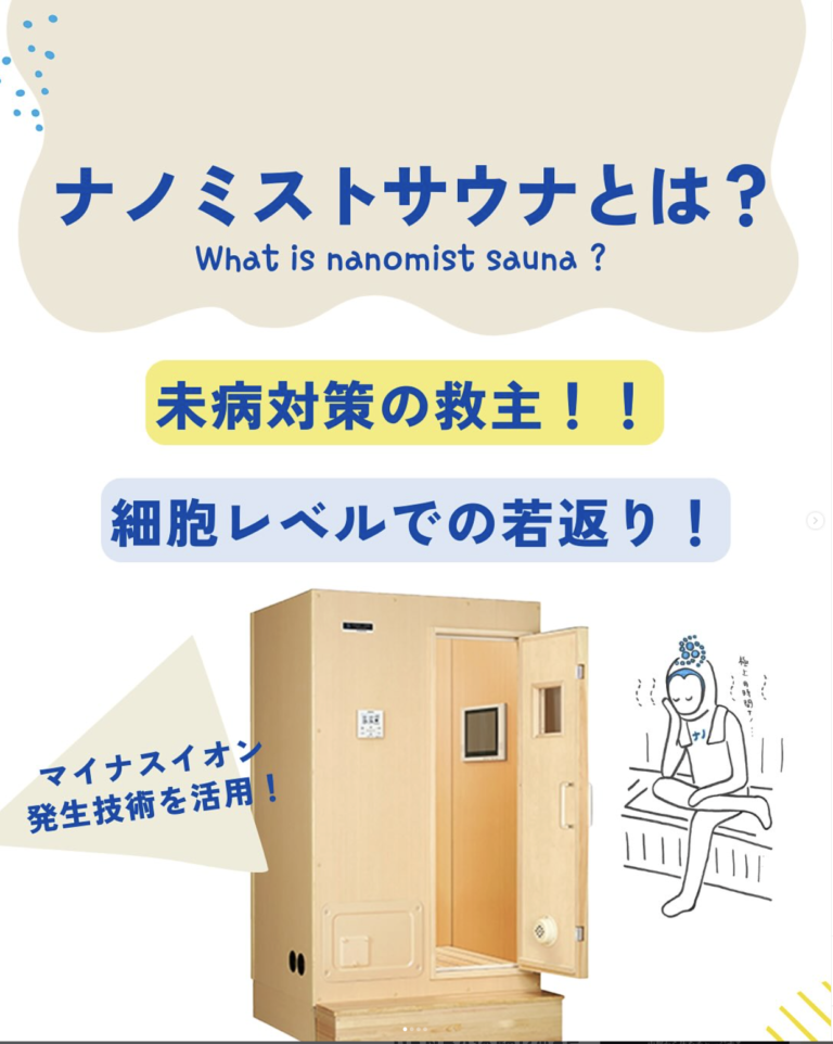 大人気‼️ ご予約は、お早めに♡ 未病対策の救世主!! 細胞レベルでの若返りに最適! 『ナノミストサウナ』とは❓ 低温(38~42℃)・高湿度サウナ! 体に負担なく 赤ちゃんからお年寄りまで、 誰でも…