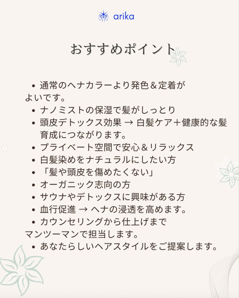 ヘナ×ナノミストサウナ🌿髪・肌・心を“ととのえる”プライベートヘアサロン《arika》