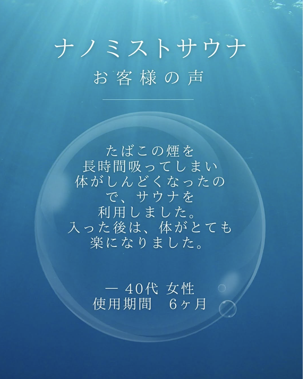 「たばこの煙を長時間吸ってしまい体がしんどくなったので、サウナを利用しました。