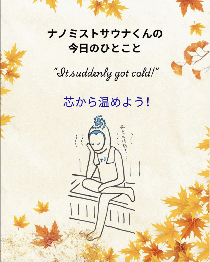 🍁急に寒くなった今こそ、ナノミストサウナの出番!