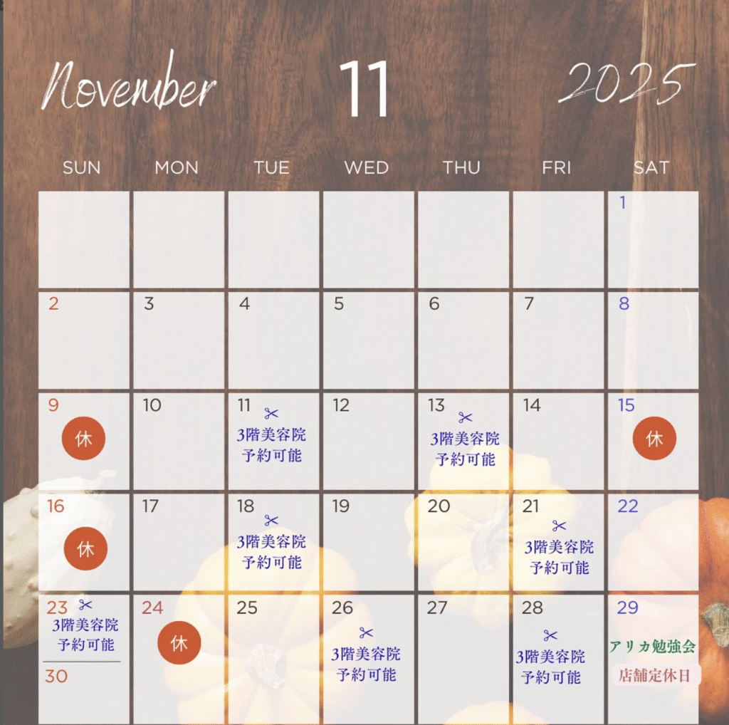 📅11月の営業スケジュールは画像をご覧ください✨