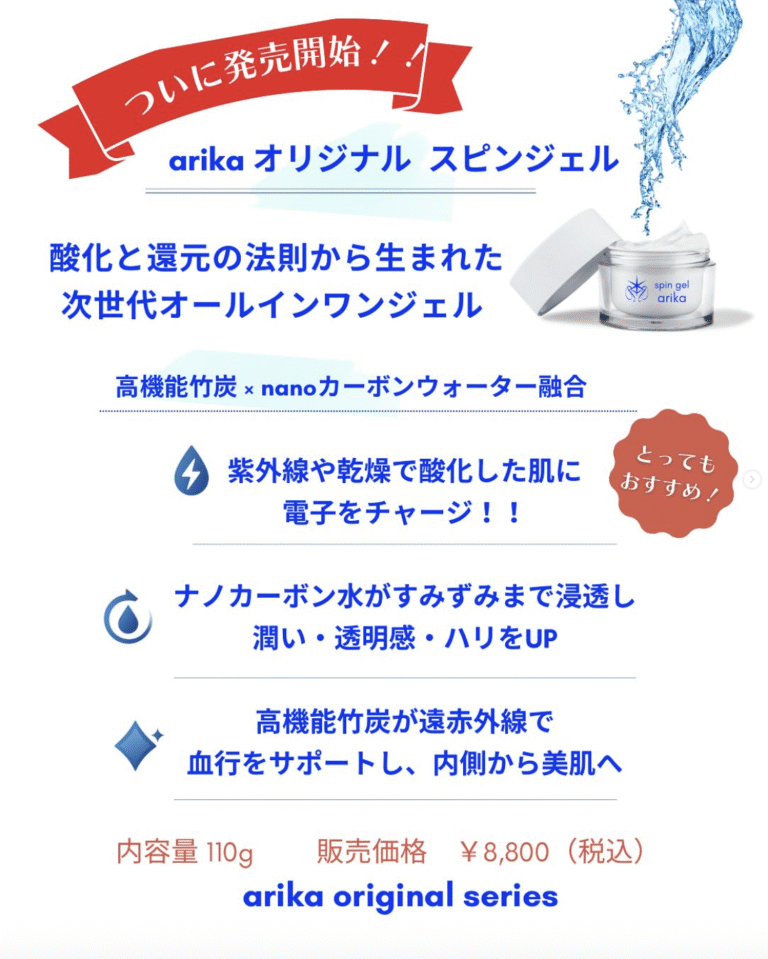 ⚡️科学が生んだ、次世代オールインワン⚡️『arika オリジナル スピンジェル』遂に発売開始!! 酸化と還元の法則をもとに。肌が電子を失い“酸化”するメカニズムに、高機能竹炭とnanoカーボンウォー…